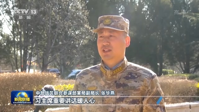 中部战区联合参谋部某局副局长 张华燕:习主席重要讲话暖人心,鼓士气,振精神,作为军人,我们内心无比激动,倍感光荣和自豪,我们将一定牢记主席嘱托,坚决听从主席指挥,坚决做到绝对忠诚,绝对可靠。