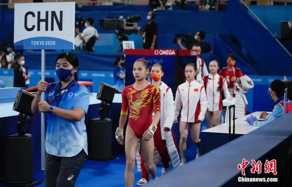东京奥运会体操比赛结束女子团体决赛较量,由唐茜靖、芦玉菲、章瑾和欧钰珊组成的中国队,总成绩161.196分排名第七位。中新社记者 杜洋 摄