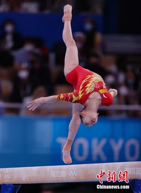 东京奥运会体操比赛结束女子团体决赛较量,中国队排名第七位。图为唐茜靖在平衡木比赛中。中新社记者 杜洋 摄