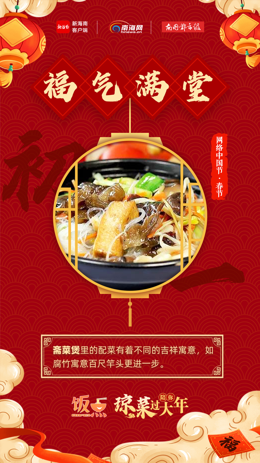 斋菜煲里的配菜有着不同的吉祥寓意,如腐竹寓意百尺竿头更进一步。