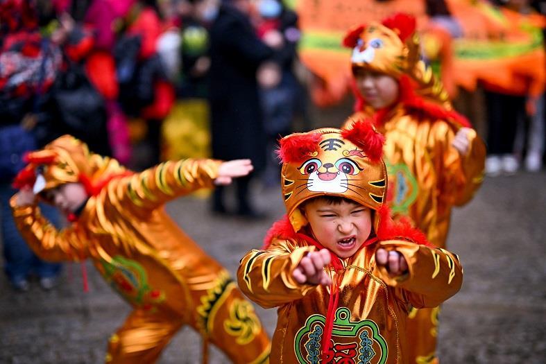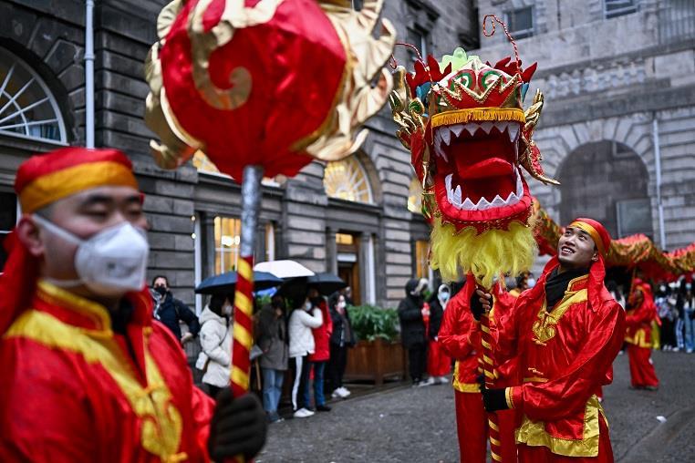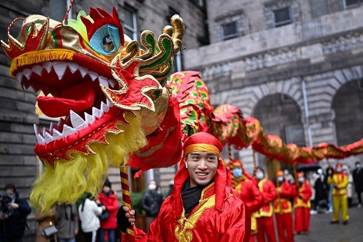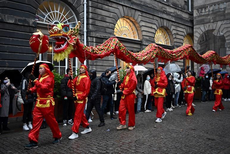 当地时间1月30日,英国苏格兰爱丁堡华人社区举办舞龙等春节庆祝活动,迎接虎年春节到来。