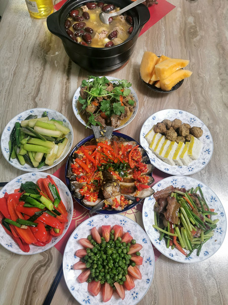 老家湖南的李梓固来武汉20年了,武汉已成为他的第二故乡,今年是他在汉过的第3个春节,一家三口自己动手,简单做了几个菜,寓意却不简单。看看他家的菜单:全家福-猪肚煲鸡、年年有余-剁椒蒸武昌鱼、蒸蒸日上-蒸鱼糕鱼丸、甜甜美美-清炒甜豆……每道菜都是满满的祝福。