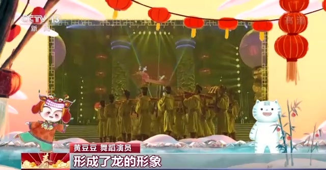 舞蹈演员 黄豆豆 :下面扛板凳的演员是一种虎的人物符号,把板凳拼起来以后就形成了龙的形象,所以到最后大家共同努力把中华民族龙腾虎跃的精气神舞出来。