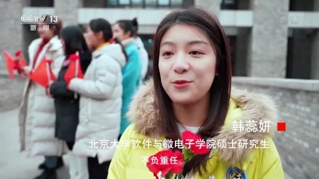 北京大学软件与微电子学院硕士研究生 韩蕊妍:作为北大的一名新青年,更应该肩负起历史的使命,不负重任,努力为实现中华民族的伟大复兴,作出自己的贡献。
