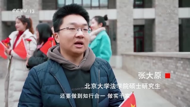 北京大学法学院硕士研究生 张大原:我觉得我在新时代,首先是要做到求真学问,练真本领,还要做到知行合一,做实干家。