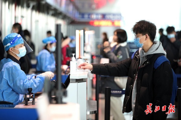 长江日报大武汉客户端2月1日讯 机场口岸是“外防输入”第一道关口。2022年2月1日,记者春节探访武汉天河国际机场,一条以隔离膜密封的“国际航班防疫专用通道”从登机口一直延伸到大巴车接驳口,实现入境人员全程闭环管理。