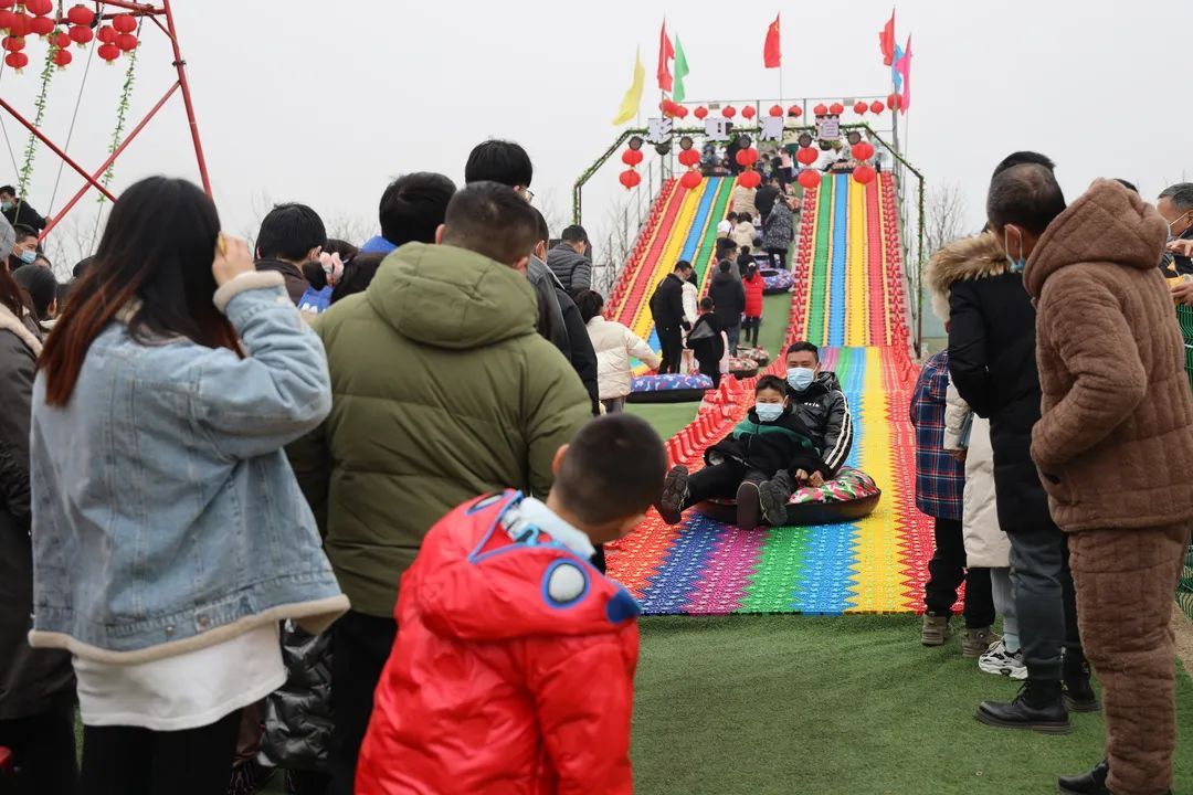 微晴,无风,哇哦乐园成了玩乐的海洋,孩子们尽情撒欢,钻绳网、越迷障,在“云朵”上蹦跳,在栈道中“飞檐走壁”,在轮胎中“匍匐前进”,享受闯关乐趣。大人们漫步草坪,荡网红秋千,滑彩虹滑道,操起网兜捕鱼,释放工作压力。
