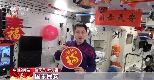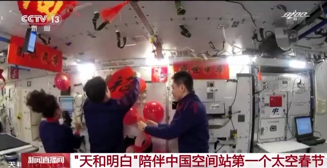 虎年春节,三名航天员将中国空间站装饰得喜气洋洋,度过了他们的第一个太空春节。空间站里贴上了春联,挂上了福字还有中国结,红红火火。而在地面上,负责空间站运行的航天人也陪他们一起过了一个团圆年。