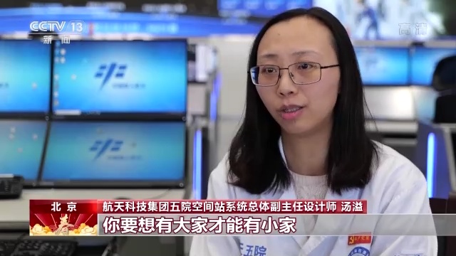 航天科技集团五院空间站系统总体副主任设计师 汤溢:所谓舍小家为大家,你要想有大家才能有小家。咱们国家逐步地强大,这些强大也是所有人的一个共同努力的结果。