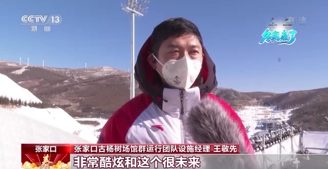 张家口古杨树场馆群运行团队设施经理 王敬先:冬季奥运会的跳台滑雪这个项目上第一次采用的这些相机,捕捉到运动员起跳那一瞬间的画面和动作,做一个360度旋转,提供一个全新角度的转播画面。大家可以在电视上看到非常酷炫,很未来、很科幻的画面效果。