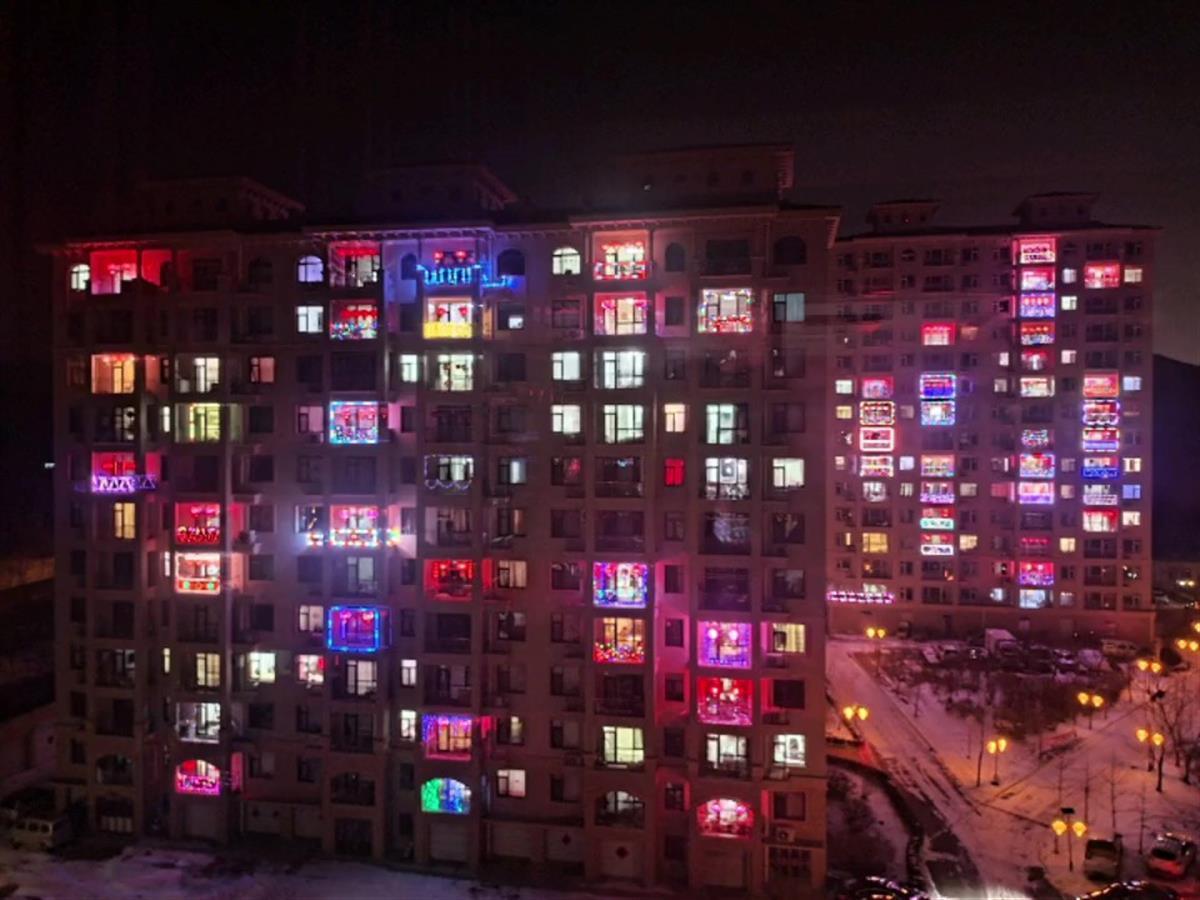 据该居民介绍,刚刚搬入小区时,阳台挂彩灯的人并不多,但因为居民们互相认识,所以有的人看到别人家装了,也会跟着装。这种小灯也不费电,基本都是成宿的亮着。今年小区受到关注,感觉明年的彩灯会更好看。