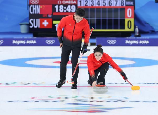 2月2日,北京冬奥会冰壶混双循环赛在北京国家游泳中心“冰立方”开赛。中国队范苏圆/凌智在首轮比赛中以7比6战胜瑞士队燕妮·佩雷特/马丁·里奥斯,迎来“开门红”。