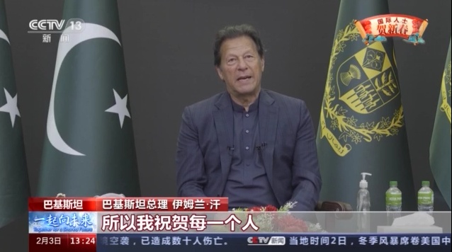 巴基斯坦总理伊姆兰·汗:首先我祝贺中国人民农历新年,我祝贺每一个人。我们正在努力提高巴基斯坦的经济和人民的福祉,使人们摆脱贫困。所以我们已经在学习中国的经验。我们想向中国学习如何建设大型城市,中国现在有这些大城市,解决了城市化过程中出现的问题,包括解决空气污染问题。