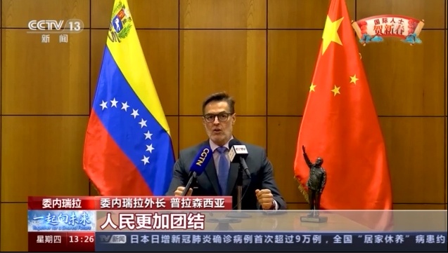 委内瑞拉外长普拉森西亚:祝愿中国在虎年更加富强,人民更加团结。我想再次感谢中国在新冠疫情期间对委内瑞拉政府和人民的帮助。