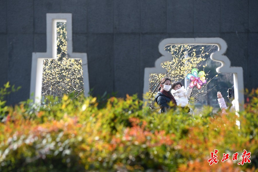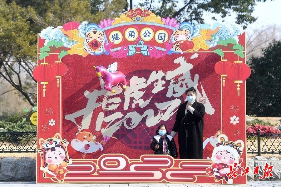 长江日报大武汉客户端2月4日讯 2月4日农历大年初四,立春,众多市民前往江岸区堤角公园游玩。伴着梅花的清香,春意浓浓;绿水无波,青草茵茵,游人纷纷在梅林里赏梅拍照。在公园南大门神雕花坛旁,以“虎虎生威”为主题的打卡墙吸引了众多游园市民驻足,他们摆出各种“POSE”打卡留影,幸“虎”满满。(长江日报记者周超 通讯员彭霞 摄影报道)