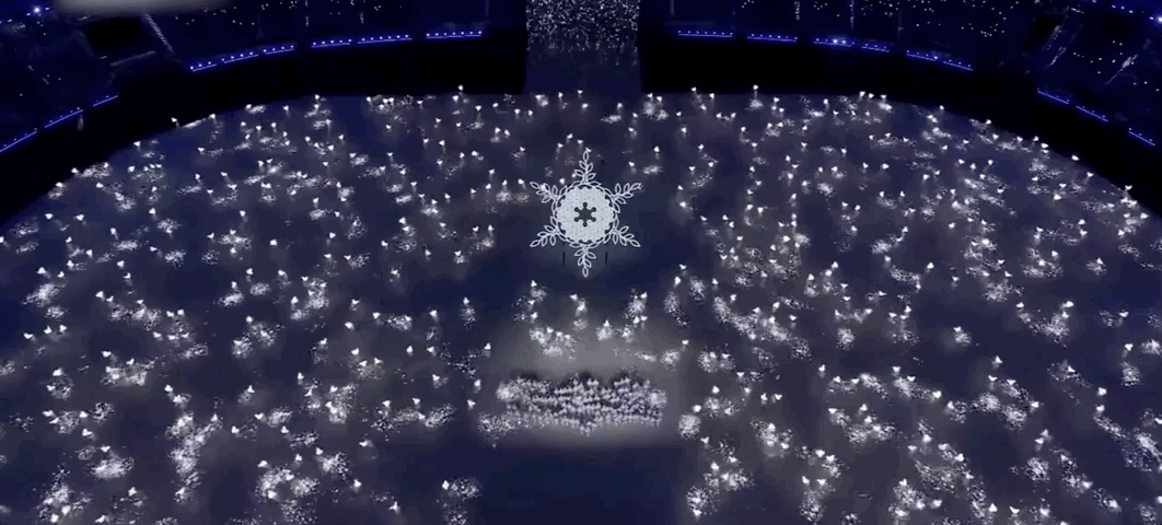 开幕式上,橄榄枝环绕的巨型“雪花”很是惊艳。很多网友疑惑,这么大的雪花是什么做的?