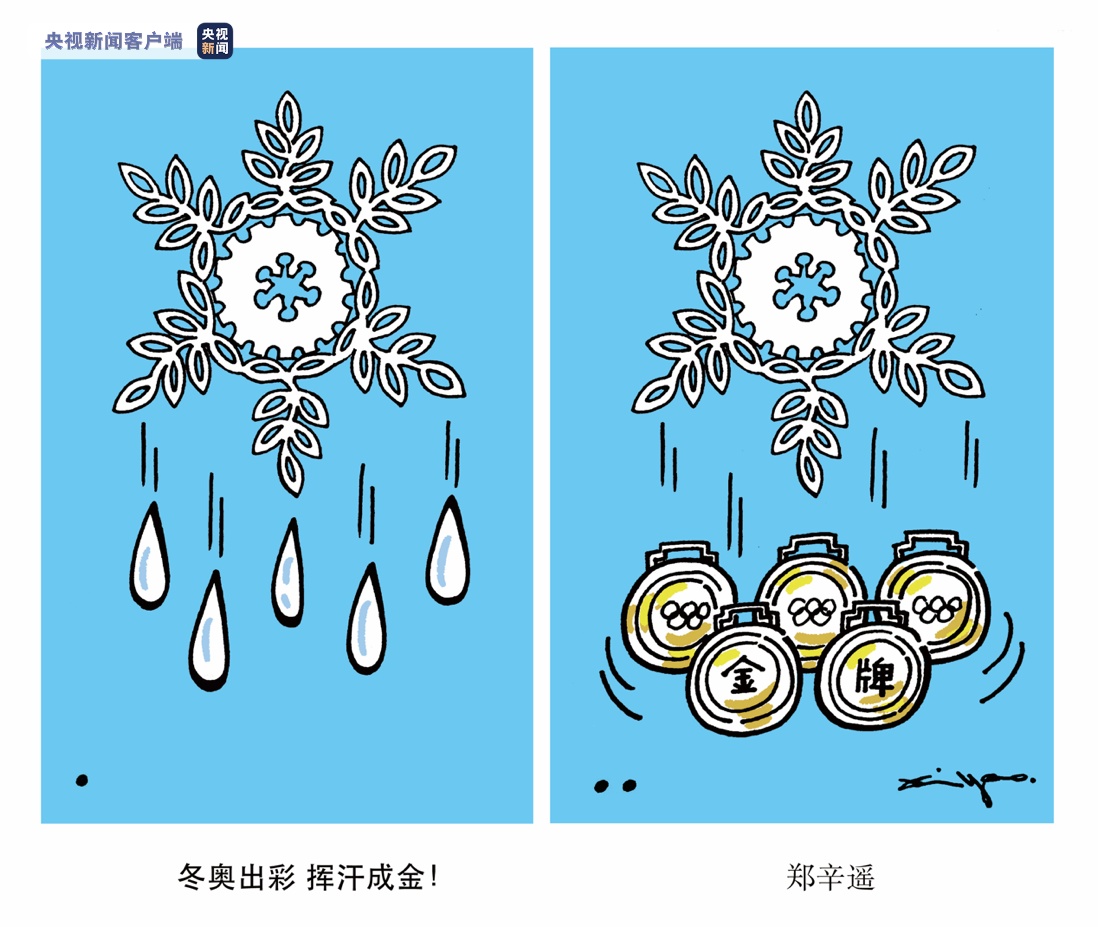 他创作的《冬奥出彩 挥汗成金!》,大雪花滴落的水滴仿佛运动员的汗水,凝结成一枚枚奖牌,祝愿多年辛苦训练的奥运健儿,都能够在赛场上圆“金牌梦”。