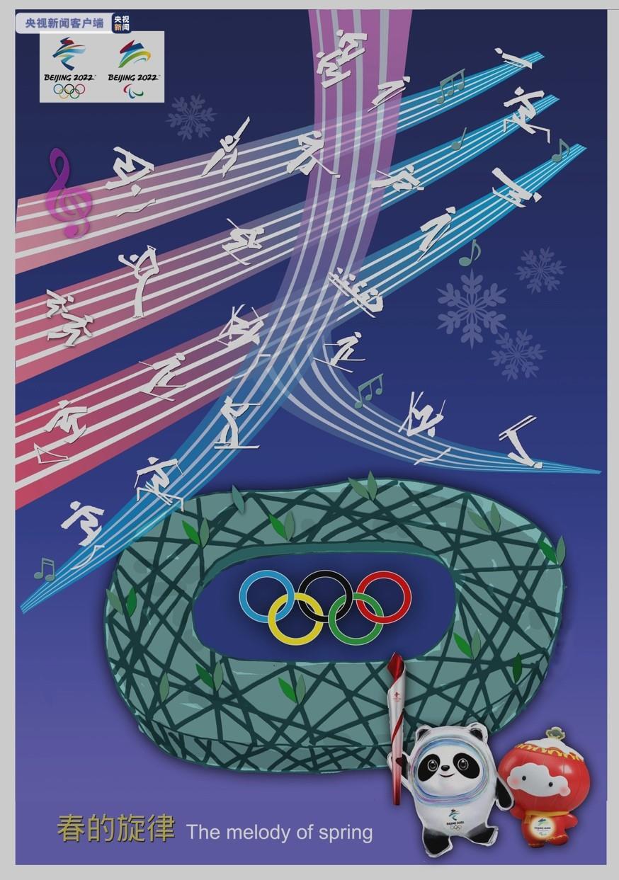 立春是四季的起点,代表着万物开始生长。天呈设计的《春的旋律》,在鸟巢之上生出春天的新叶,象征着冬奥场上欣欣向荣,生机盎然。