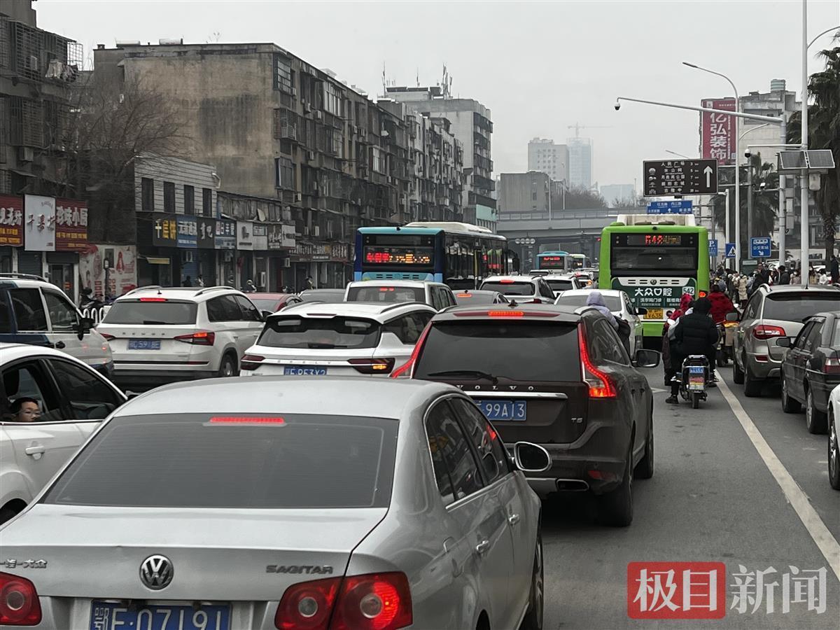2月5日,大年初五,湖北襄阳气温较前几日有所降低,但市民出行热情不减。中午11点,极目新闻记者乘坐公交车途经襄阳三大主城区看到,一路上车流量较大,不少路段出现拥堵。