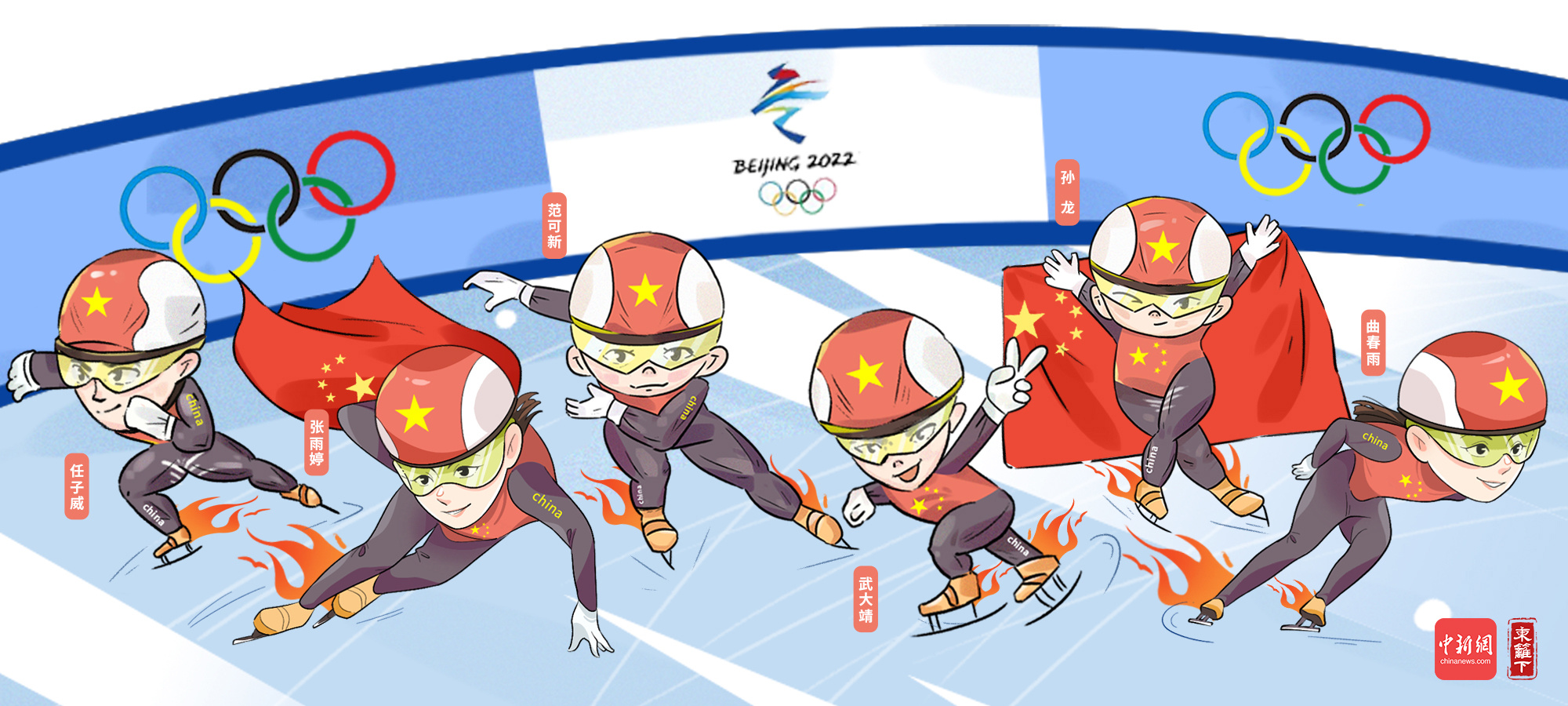 这是武大靖连续两届冬奥会有金牌入账,也是任子威、范可新、曲春雨首次登上奥运冠军领奖台。