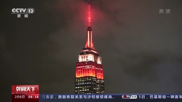 庆祝冬奥会开幕 帝国大厦上演灯光秀