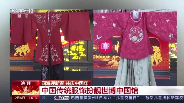 春节期间,多种中国传统服饰亮相迪拜世博会中国馆,向世界各地的游客展现中国文化特色。