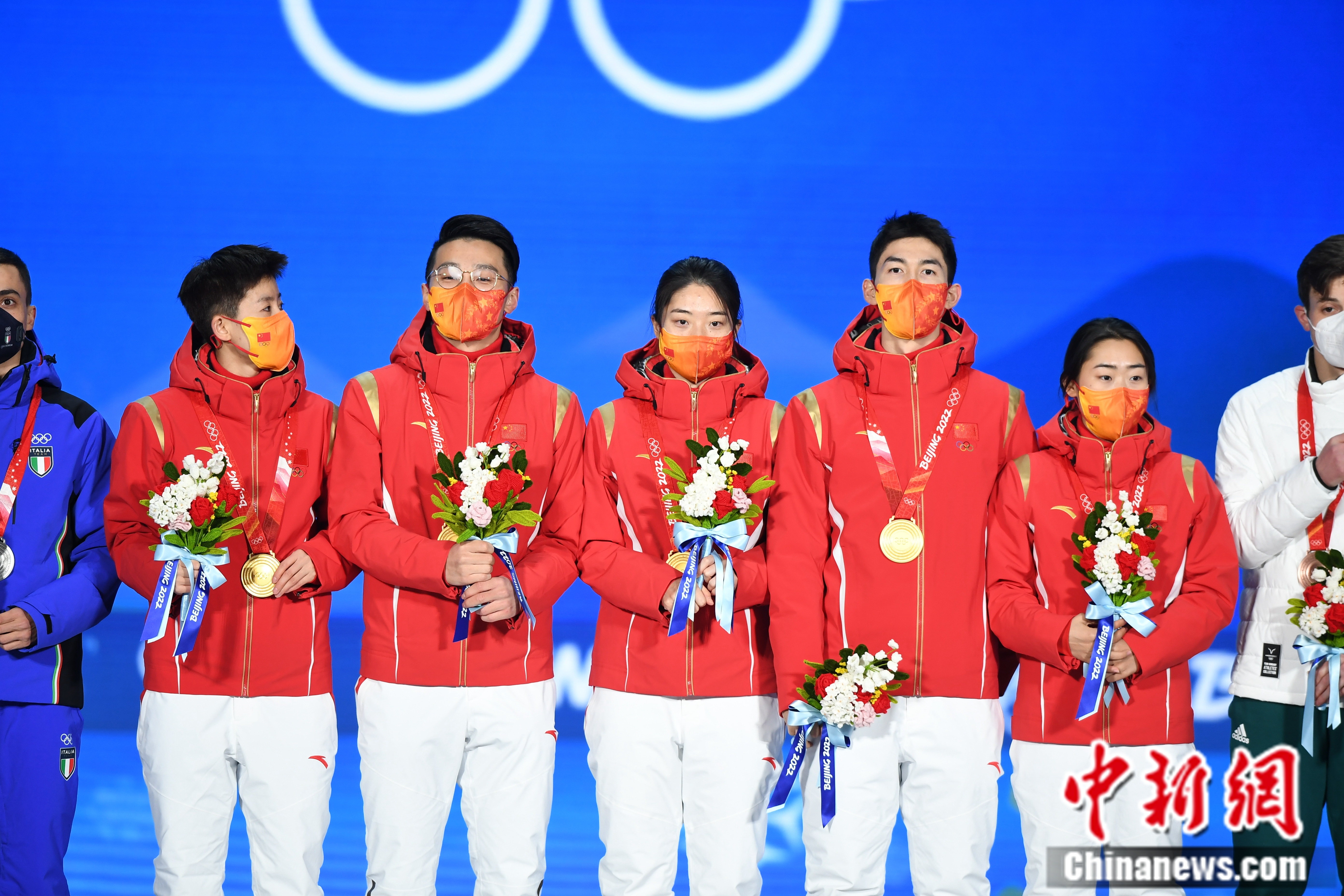 一天等待之后,属于中国短道速滑队的颁奖礼终于来了。