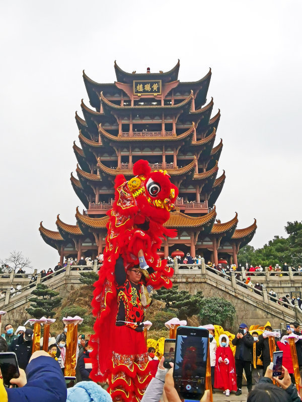 《惊艳亮相》2月3日 黄鹤楼公园,游人络绎不绝。春节标志性活动舞龙舞狮也隆重登场,龙舞狮腾吸引了众多游人。大家纷纷拿出手机摄录精彩的狮腾龙舞。我则抓拍了这“惊艳亮相”,这是虎年春节假期我最满意的一张照片。 城市摄影队 程佳兴 摄
