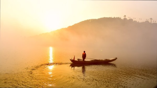 《晨光雾漫美东湖》 2月4日早晨,湖面染上了迷人的金色。清洁湖面的小船与时隐时现的磨山组成了非常迷幻的画面,实为难得。 城市摄影队 金成钢 摄