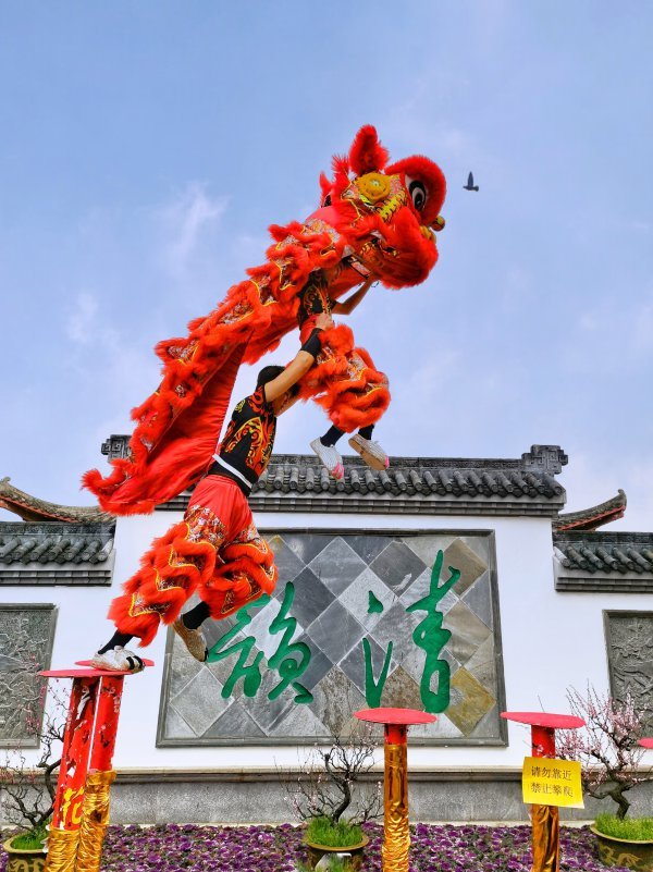 《梅园舞狮》,2月5日,东湖梅园,立春后的梅园春光明媚,梅花盛开。正月初五,前来梅园赏梅的游人络绎不绝,春节舞狮吸引了众多游客,人们与狮子互动打卡,欢声笑语,高潮迭起。 城市摄影队 龚建国 摄