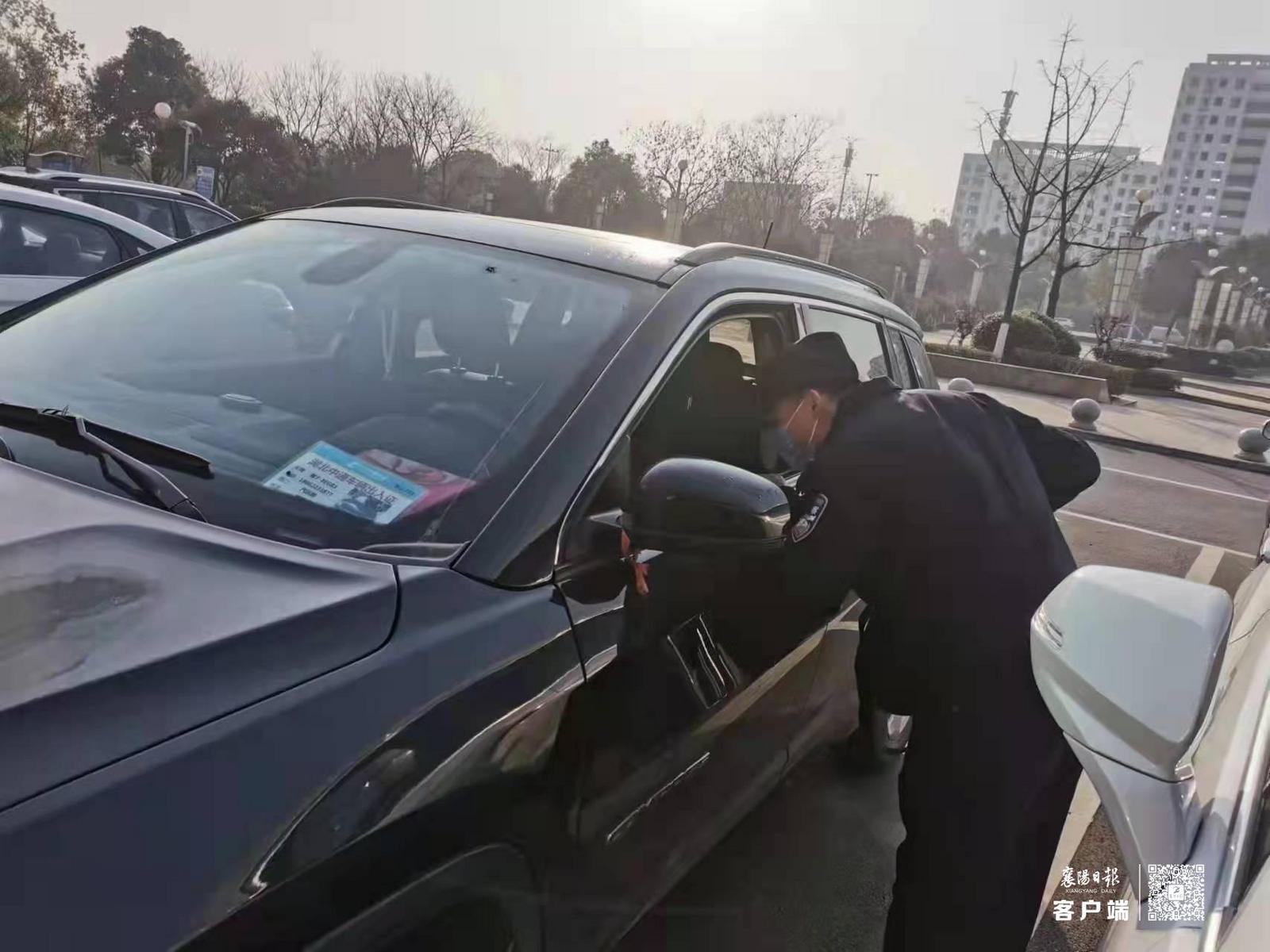 因担心车主财产受到损失,民警打开执法记录仪,将车内的背包和外套等,带回派出所保管,并在车内留下便条告知车主。