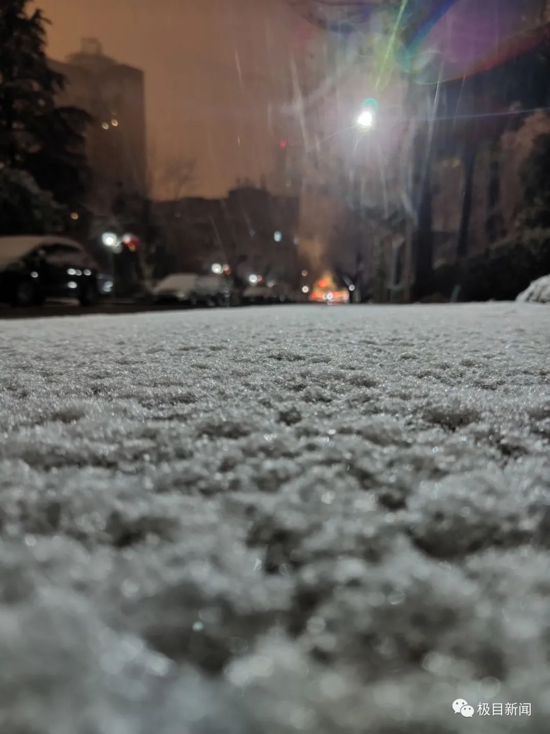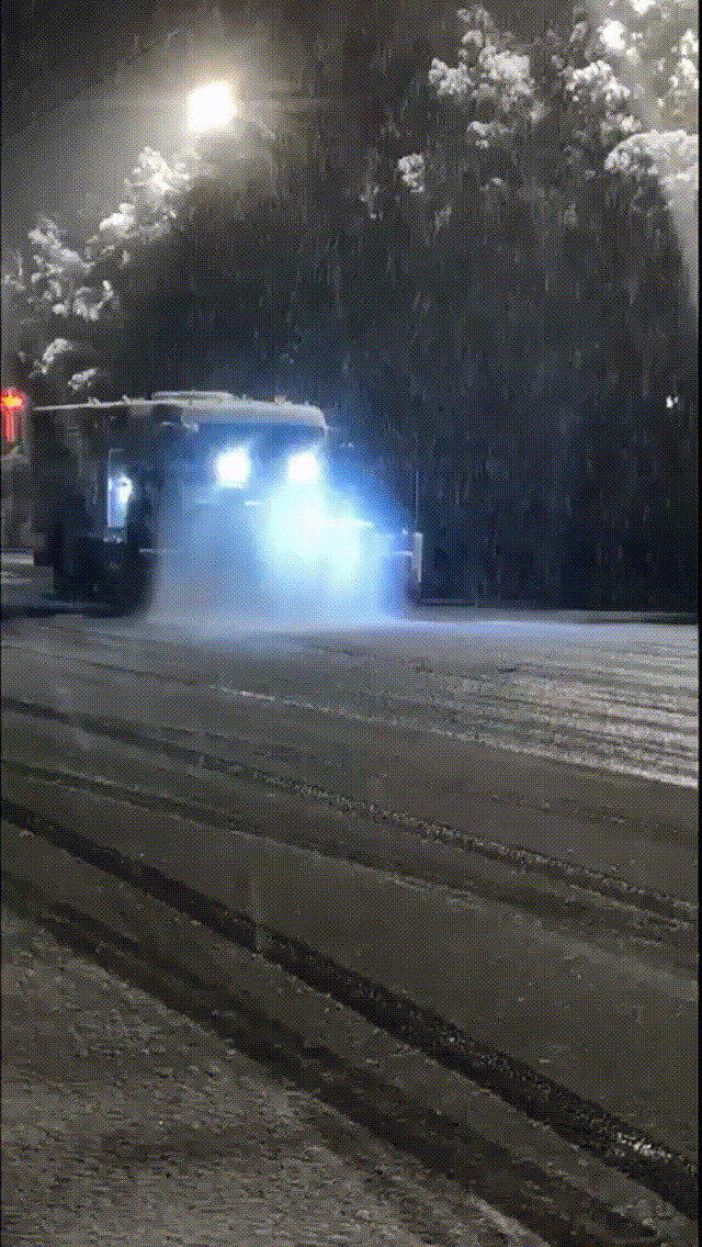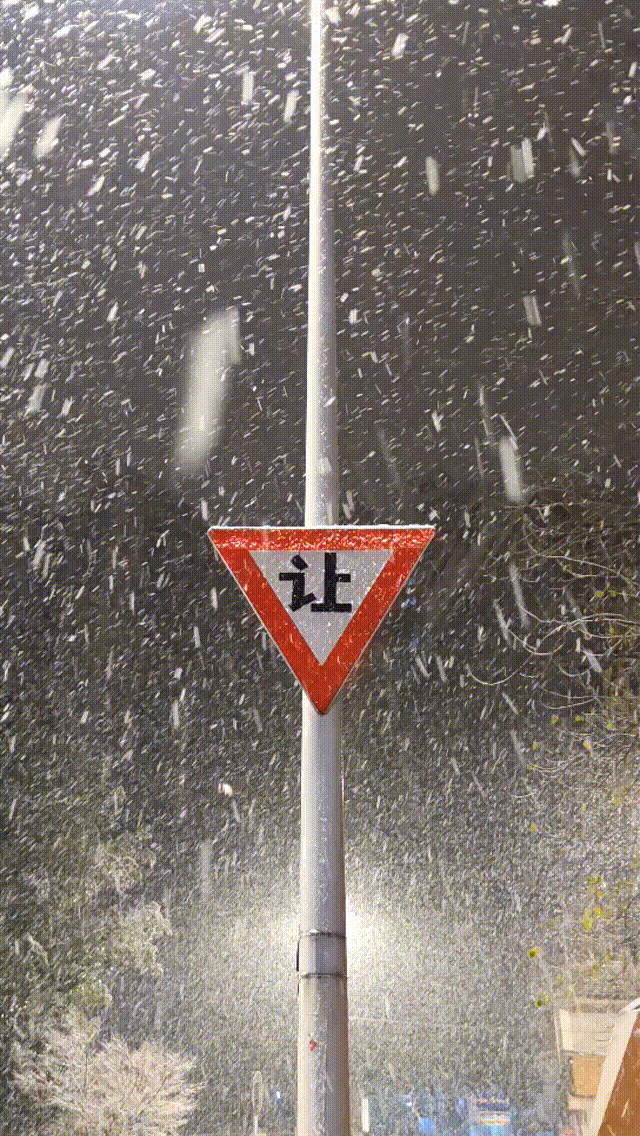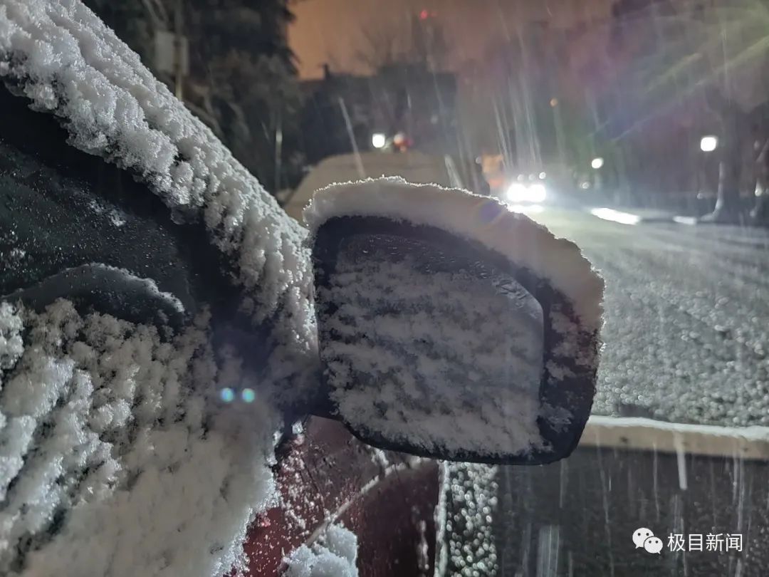 凌晨1:30,雪肉眼可见地变大,路上已有白色积雪。
