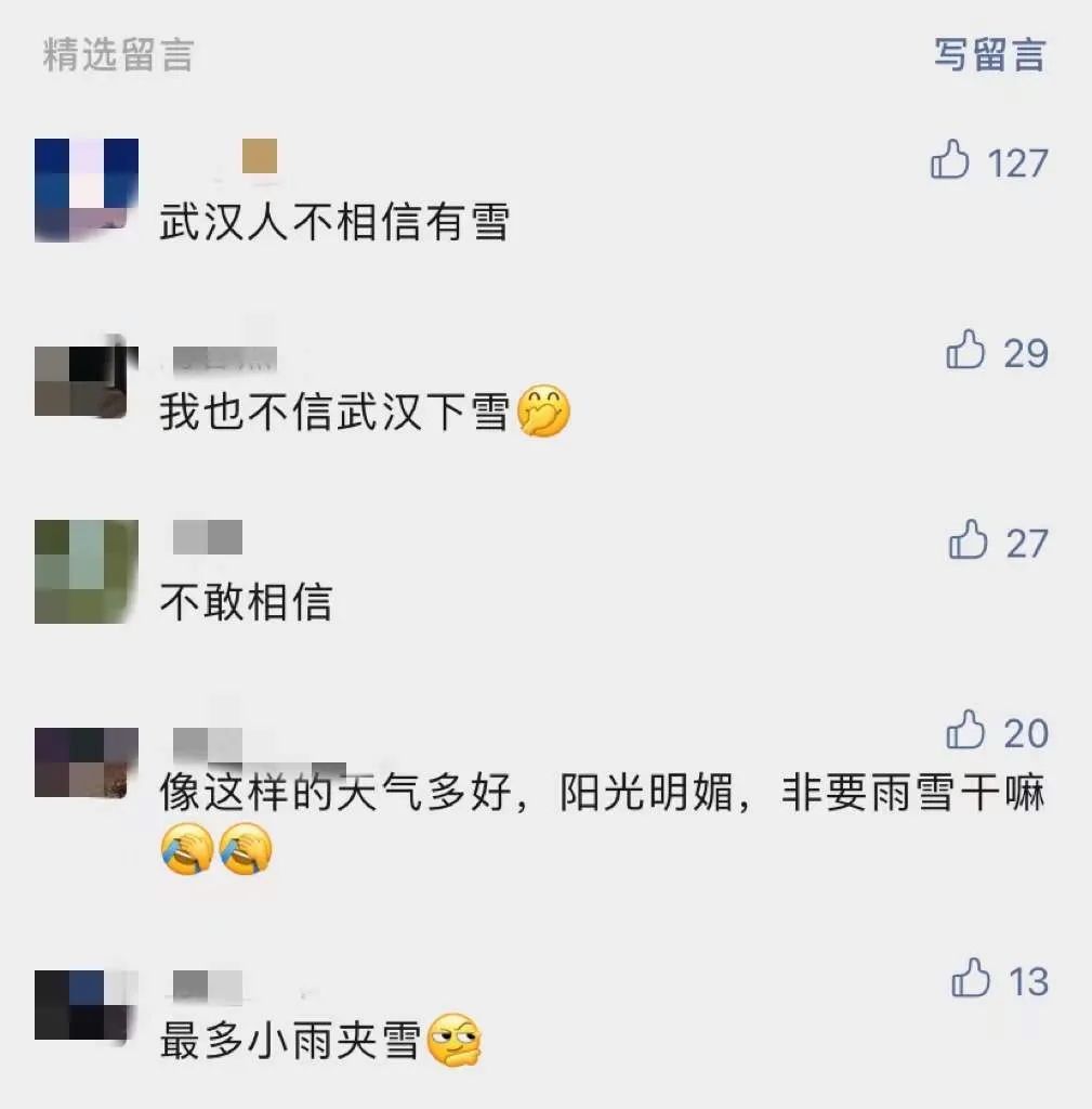 有网友说:“不相信武汉下雪”