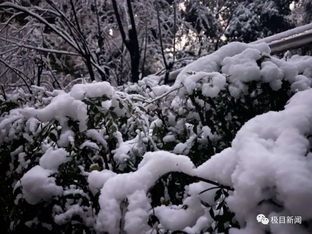 清晨6时许,武汉植物上的积雪在4厘米左右