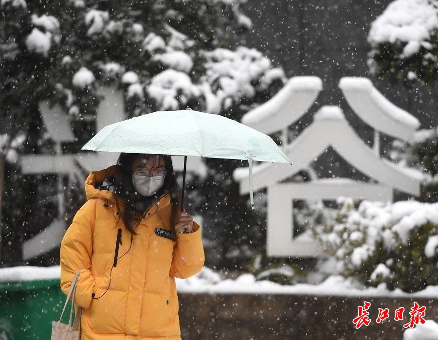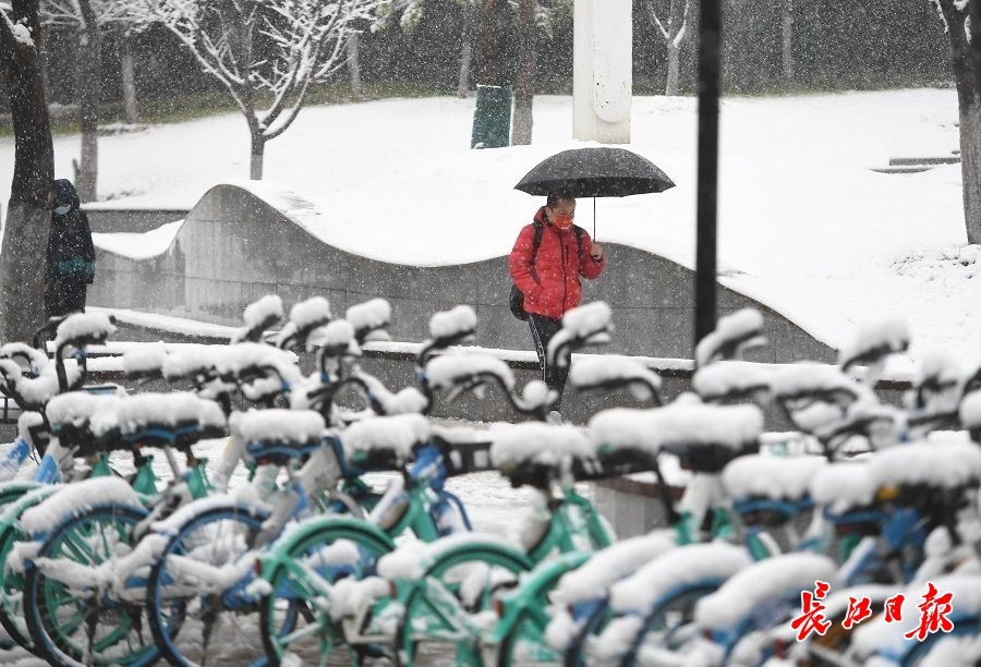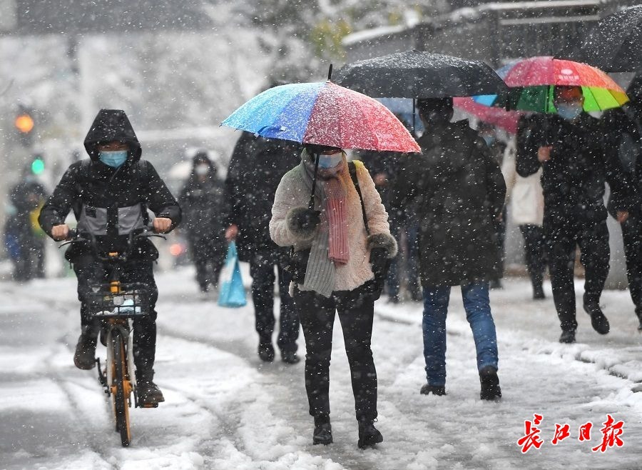节后第一个工作日,光谷大道上,上班族在瑞雪纷飞中赶往各自工作岗位。 长江日报记者高勇 摄