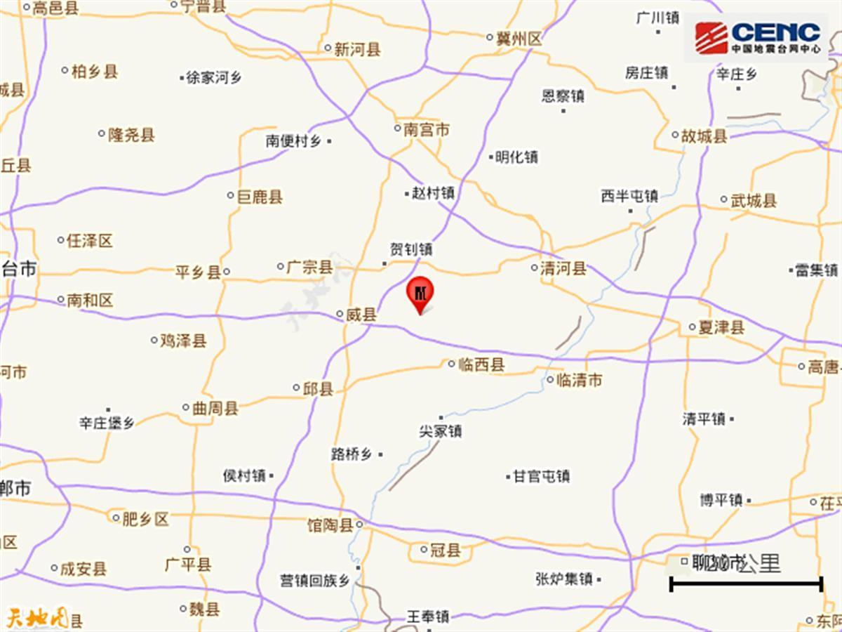 据河北日报消息,邢台市全市有震感,震中附近威县、清河、临西、平乡、南宫等震感明显。邯郸市永年、邱县、馆陶有震感。衡水南部、石家庄部分地区有震感。无人员伤亡和财产损失报告。
