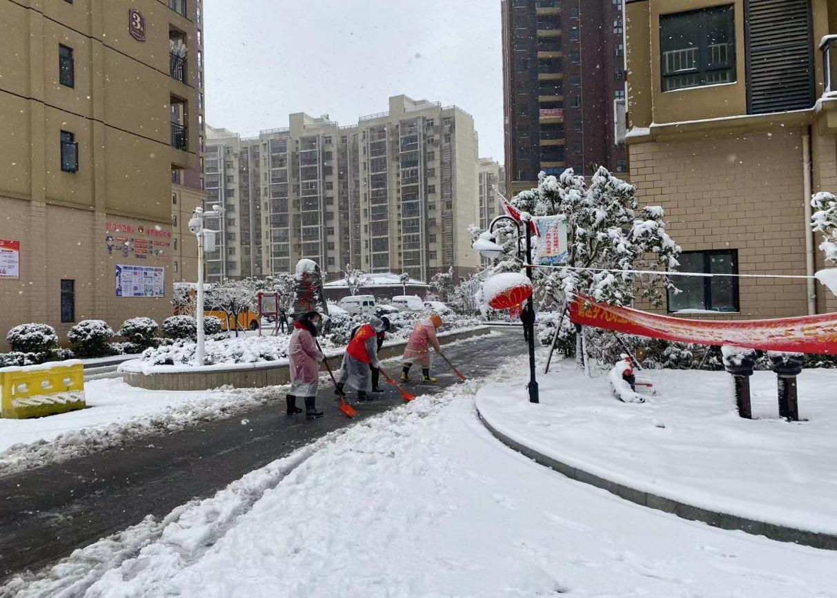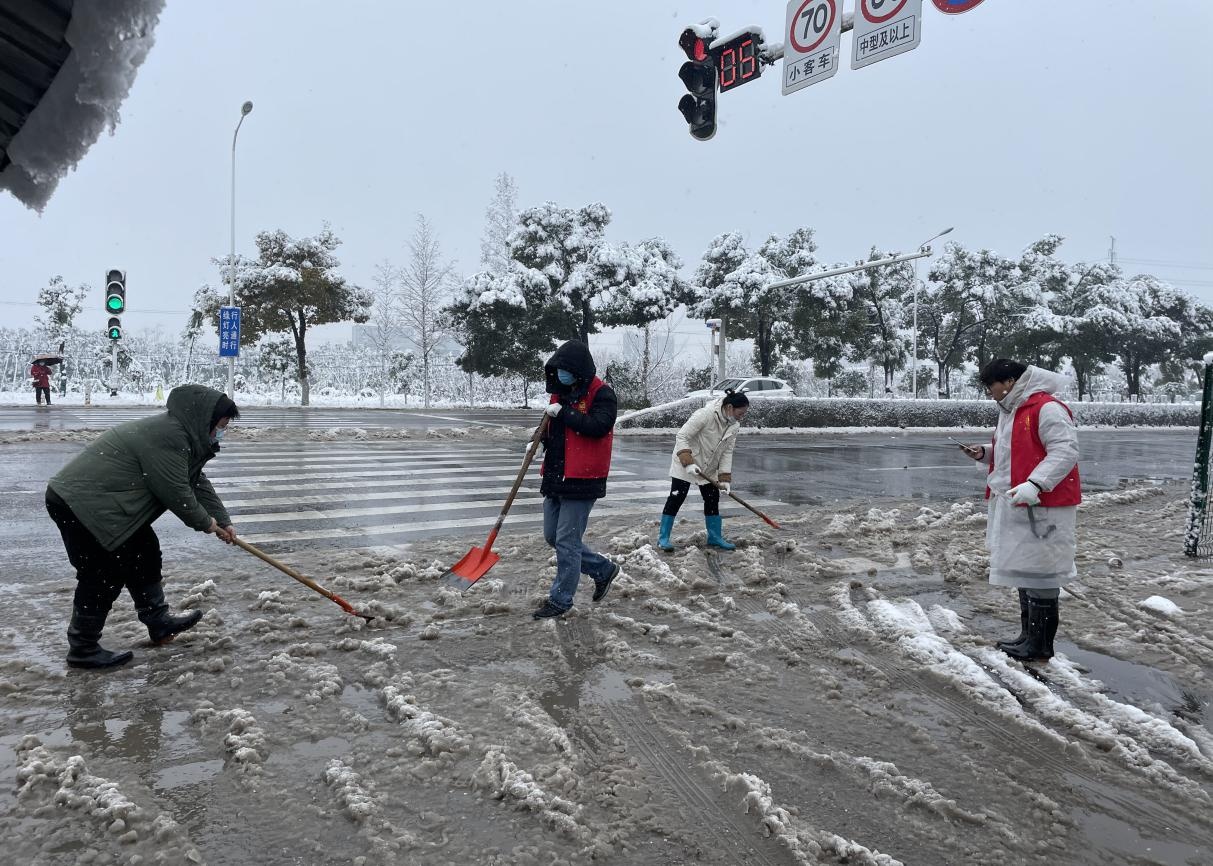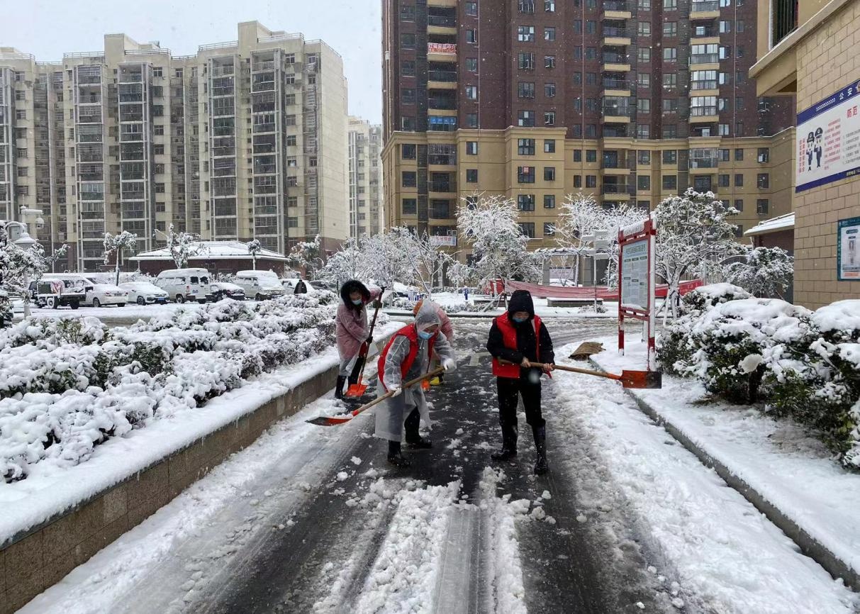 兴达社区工作人员铲雪除冰,为居民出行扫清障碍。 通讯员刘祎畅 摄