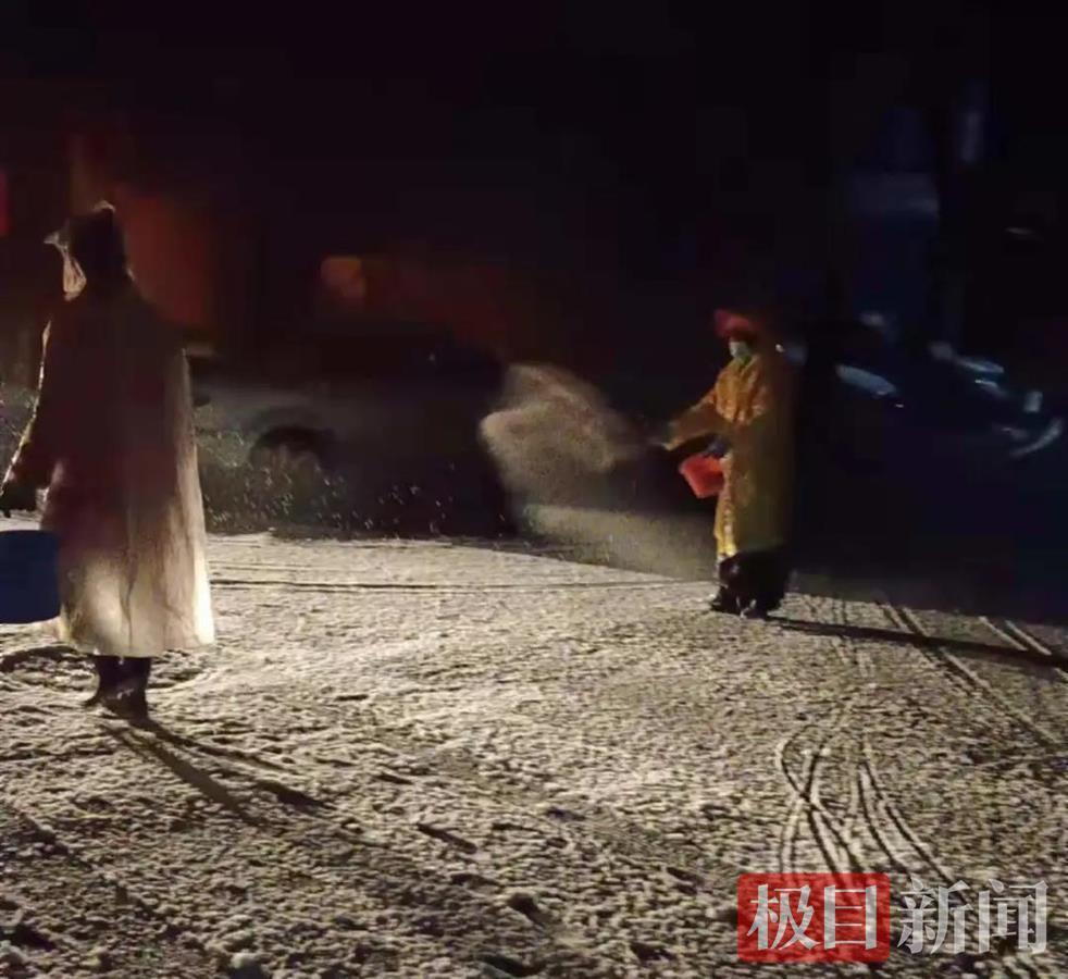 7日凌晨2点,工作人员继续撒盐融雪,清运积雪,同时在双湖桥等路段铺设防滑草垫,17个社区及时出动,组织社区工作者、安保人员及下沉党员、志愿者集中铲雪。街道领导班子、机关干部第一时间到包点社区,协助社区开展融雪防冻工作,深入小区、楼栋进行巡查,排查安全隐患。