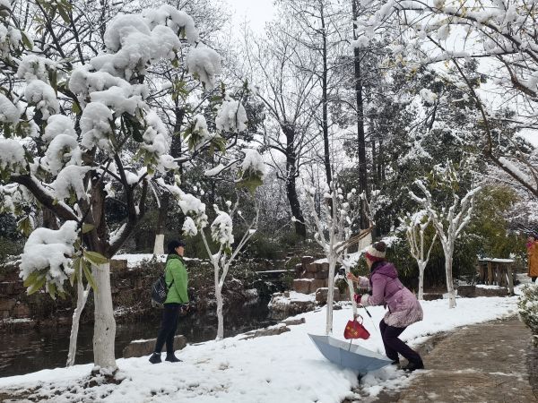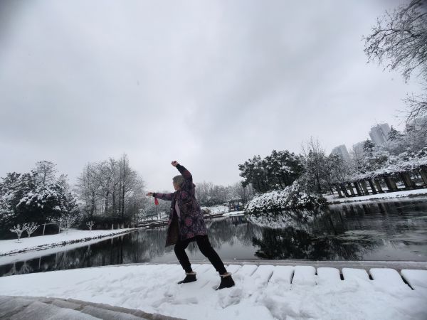 枝叶散发着清香,白雪映射出光亮,空气也越发沁人。大人带着孩子们在公园里堆雪人、打雪仗、赏梅花、吹湖风、拍雪景,老人则傲立雪中挥舞长剑,述说意蕴绵长的豪侠故事。