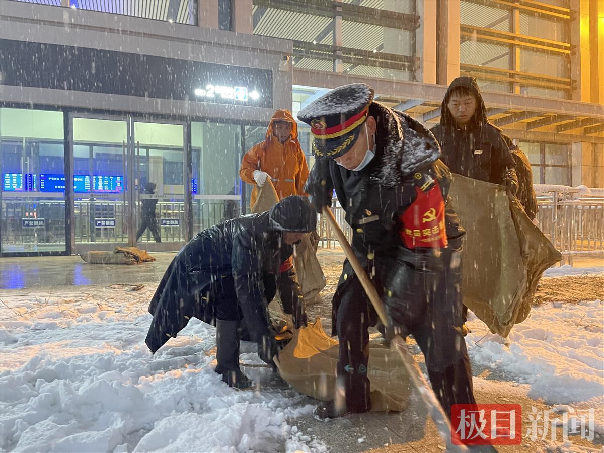 武铁各大火车站及时清扫站台积雪,在进出站主要通道、露天步梯台阶等关键场所铺设防滑垫、麻布袋等防滑物品,同时加强旅客乘降组织引导,积极提供平安出行保障。武汉、襄阳、十堰、麻城以及豫南信阳等地车站升级客运服务措施,加强候车室空调设备的调控和热水供应,组织“党团员突击队”“志愿者服务队”做好重点旅客帮扶工作,确保旅客出行安全有序。武汉客运段、襄阳客运段、武汉动车段、武昌客车车辆段等单位列车工作人员,全力做好列车上的空调供暖、餐饮供应等服务保障,让旅客在雨雪降温天气下温馨出行。