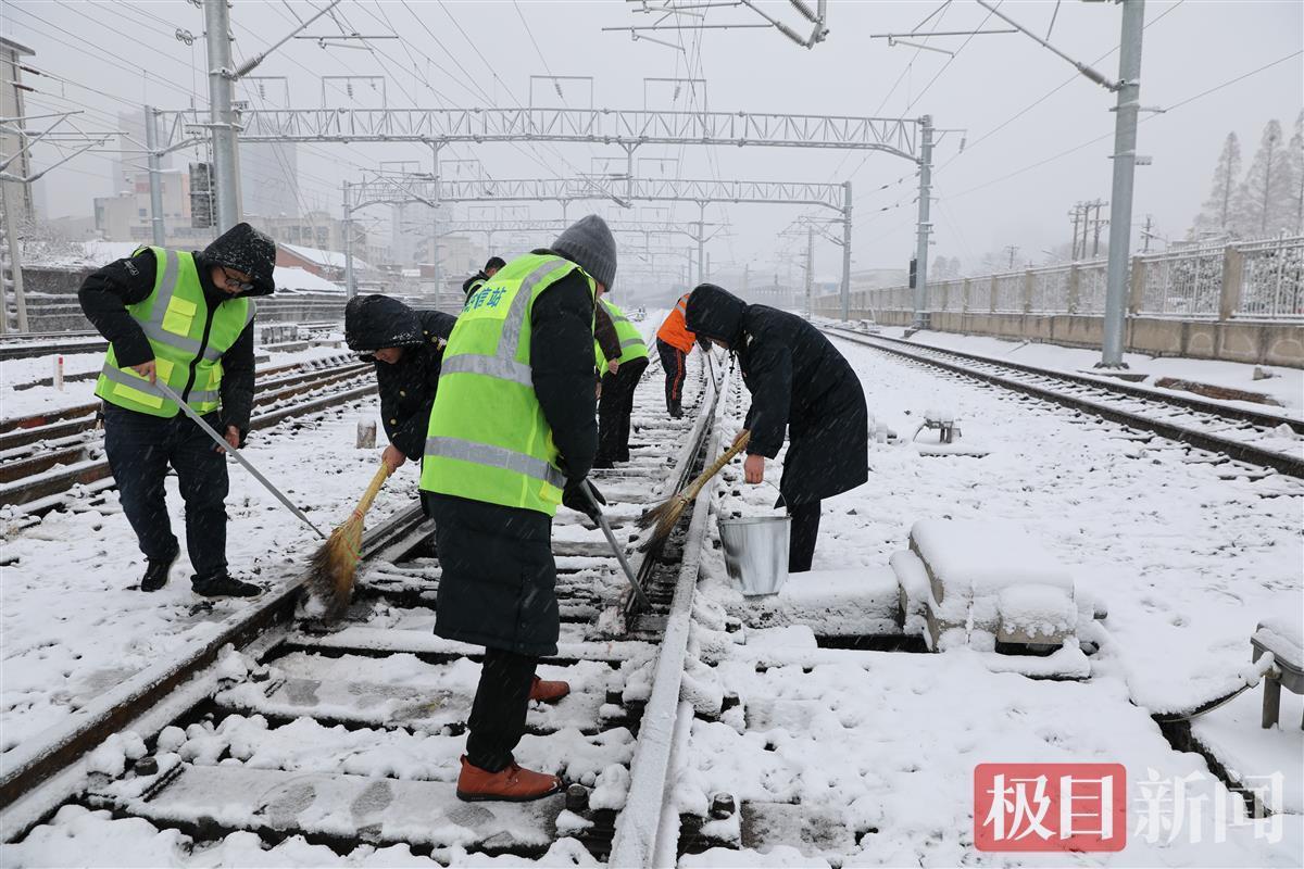 为有效应对此次雨雪天气,武汉铁路部门提前预警、提早部署,第一时间采取安全应对措施,2月6日起,连夜组织工务、电务、供电、车辆等专业单位,成立扫雪除冰专班,重点对道岔区段、轨道线路、接触网、变配电所、动车组以及相关设备设施进行扫雪除冰,保障设备运行正常。
