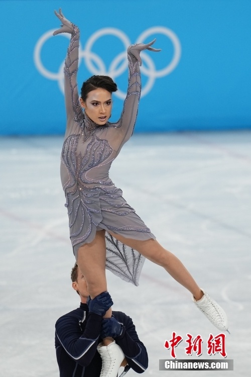 2月7日,北京2022年冬奥会花样滑冰团体赛冰上舞蹈自由舞比赛在首都体育馆举行。图为美国选手麦迪逊·乔克(上)、埃文·贝茨在比赛中。 中新社记者 崔楠 摄