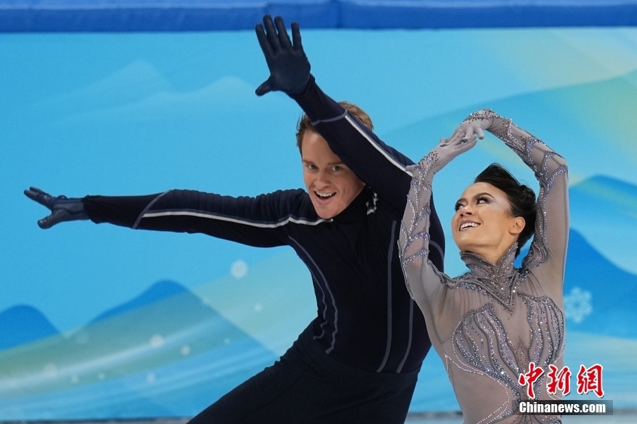 2月7日,北京2022年冬奥会花样滑冰团体赛冰上舞蹈自由舞比赛在首都体育馆举行。图为美国选手麦迪逊·乔克(右)、埃文·贝茨在比赛中。 中新社记者 崔楠 摄
