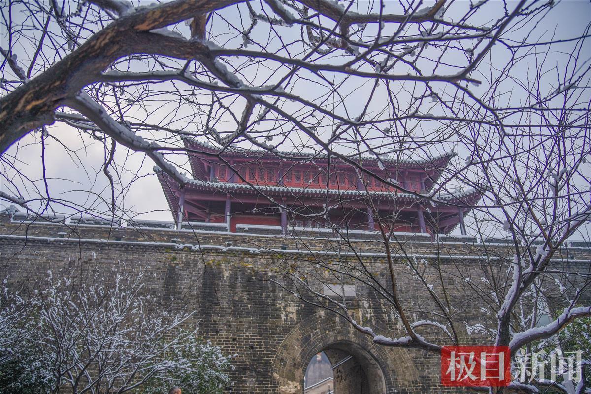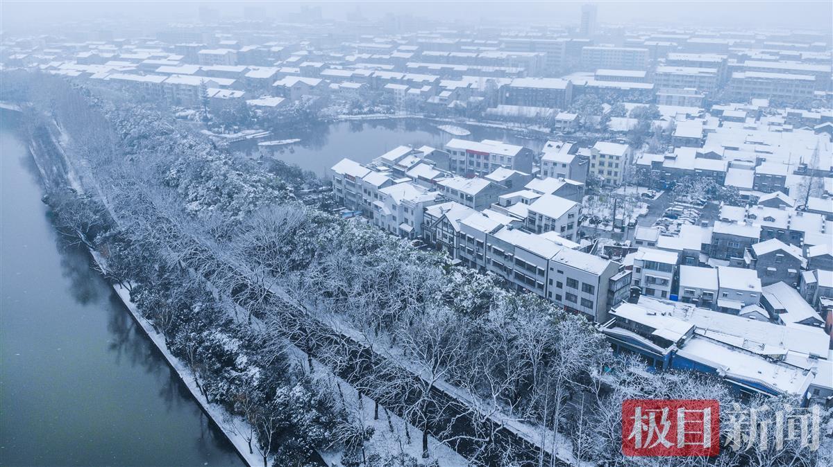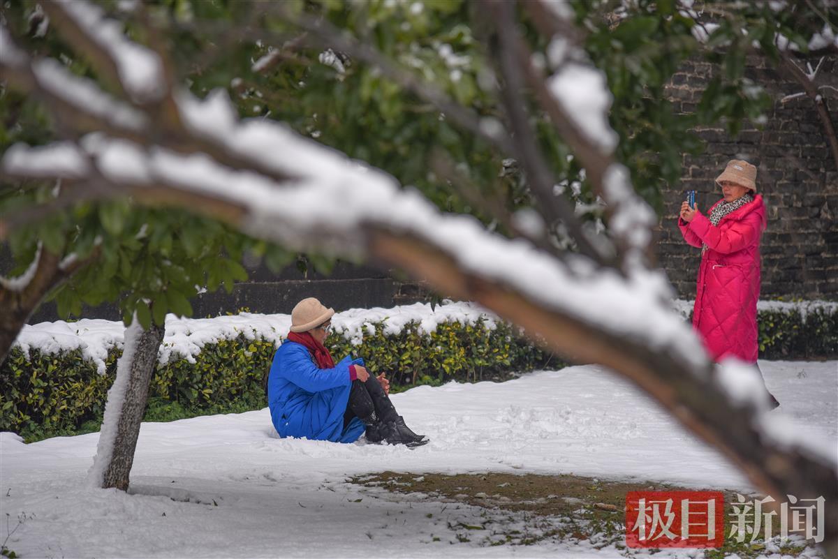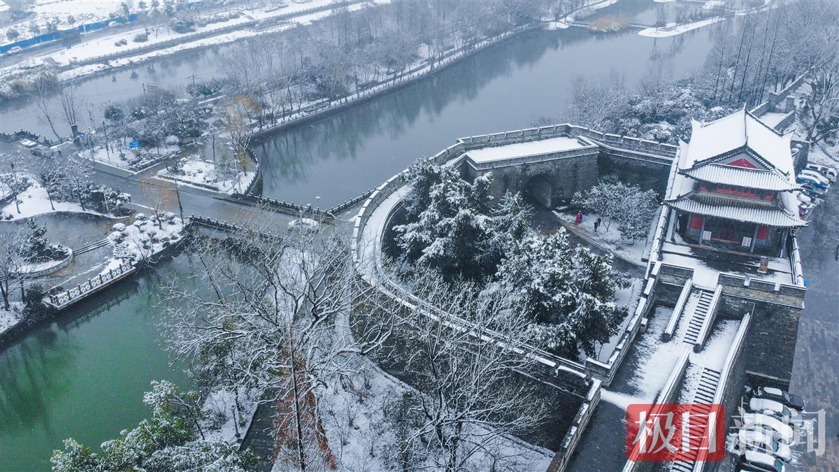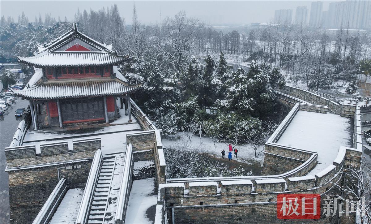 2月7日一大早,极目新闻记者在荆州古城朝宗楼下看到,厚厚的积雪已经将荆州古城墙妆点成白色。无人机航拍画面显示,古城内外、银装素裹、分外妖娆,宛如梦幻的童话王国。在瓮城内,不少当地市民特地前来和雪中的城墙合影,小朋友则在雪中堆雪人、打雪仗,一幅欢乐的雪趣图跃然呈现。