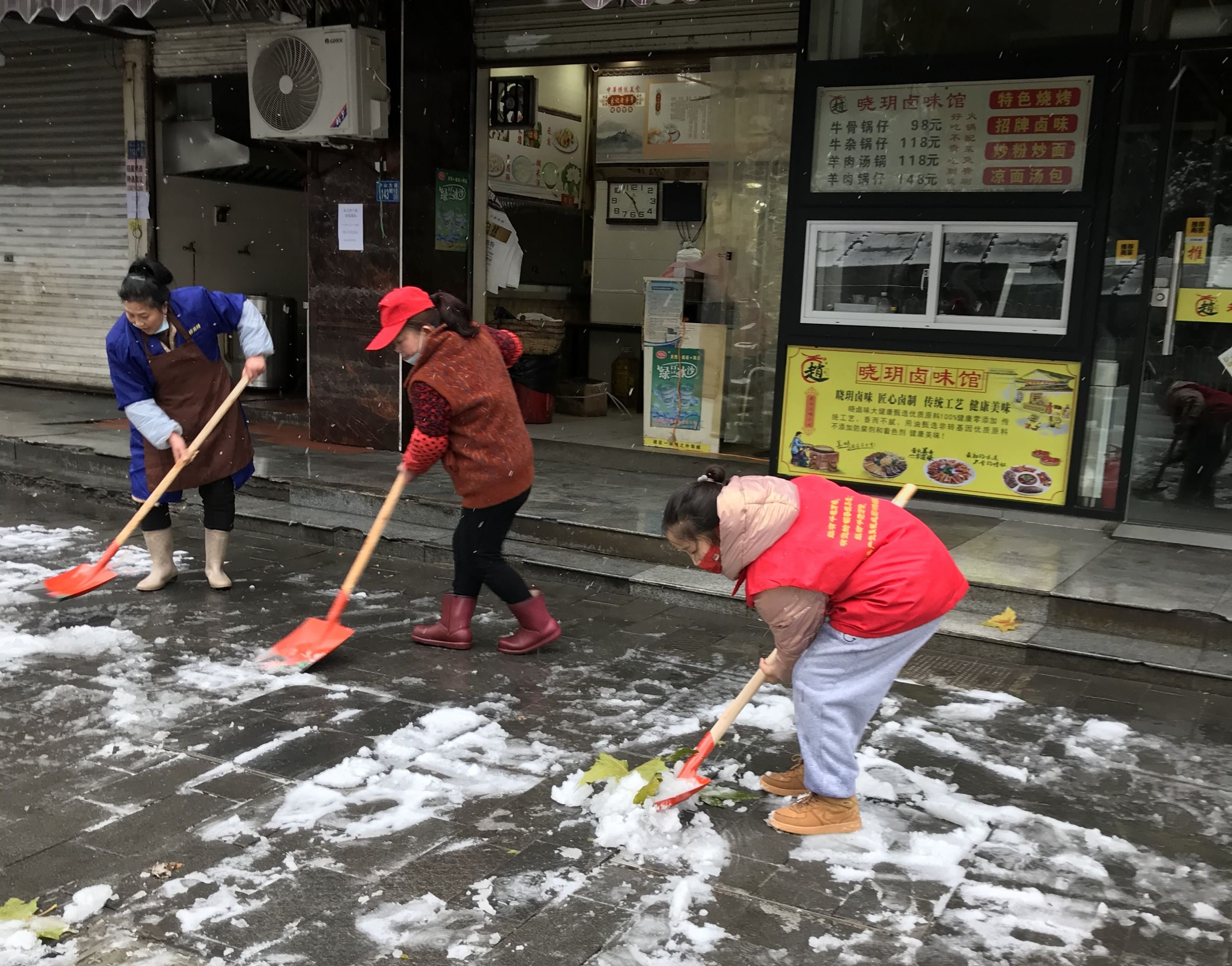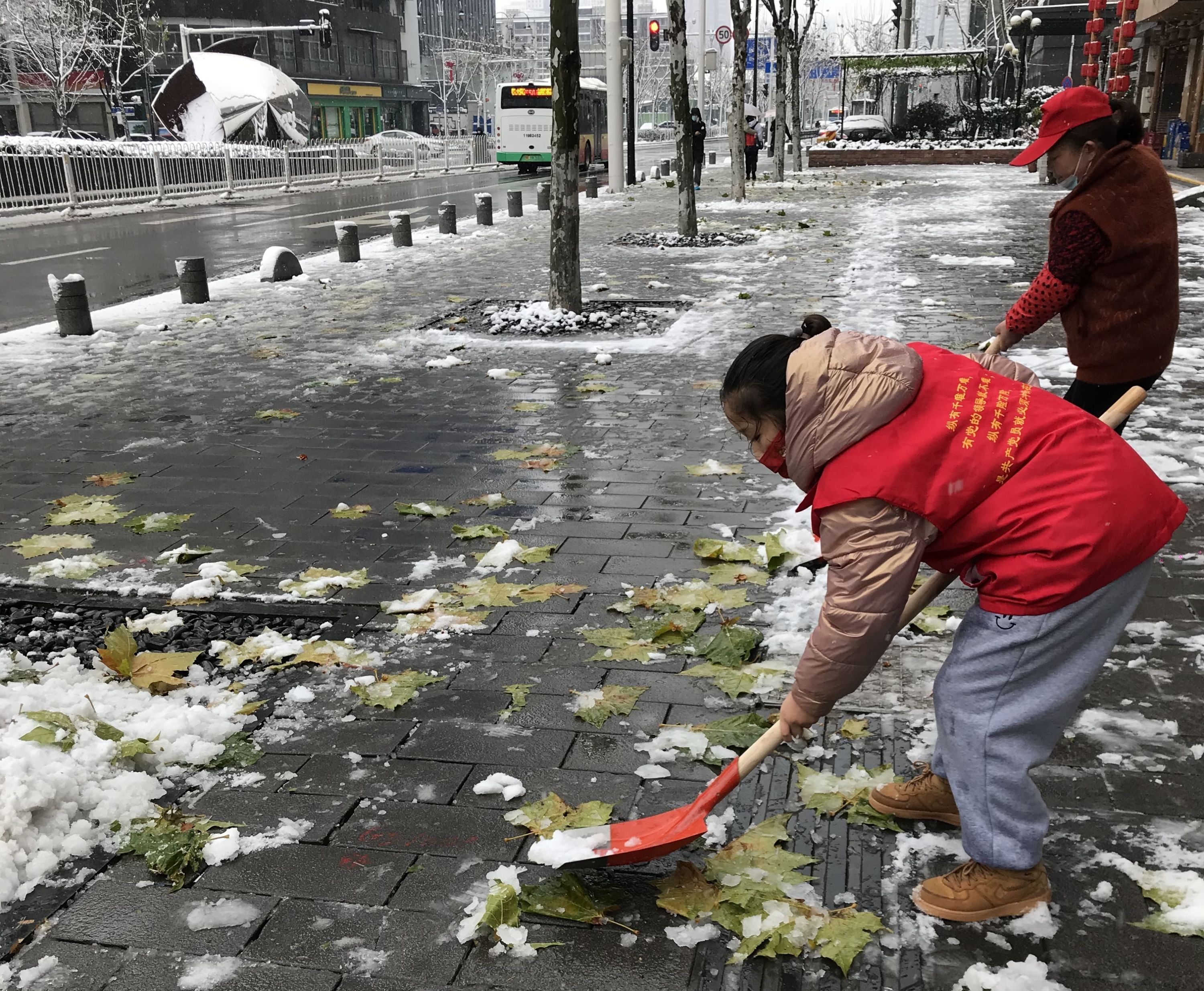 上午8时,社区工作人员、志愿者带着铁锹、扫帚和盐,来到事先分配好的区域,有序开展清雪除雪工作。“别看她人小,劲都攒足了。她拿着工具一会儿铲雪,一会儿拍打树枝上的积雪,十分积极。”社区书记肖妤说。