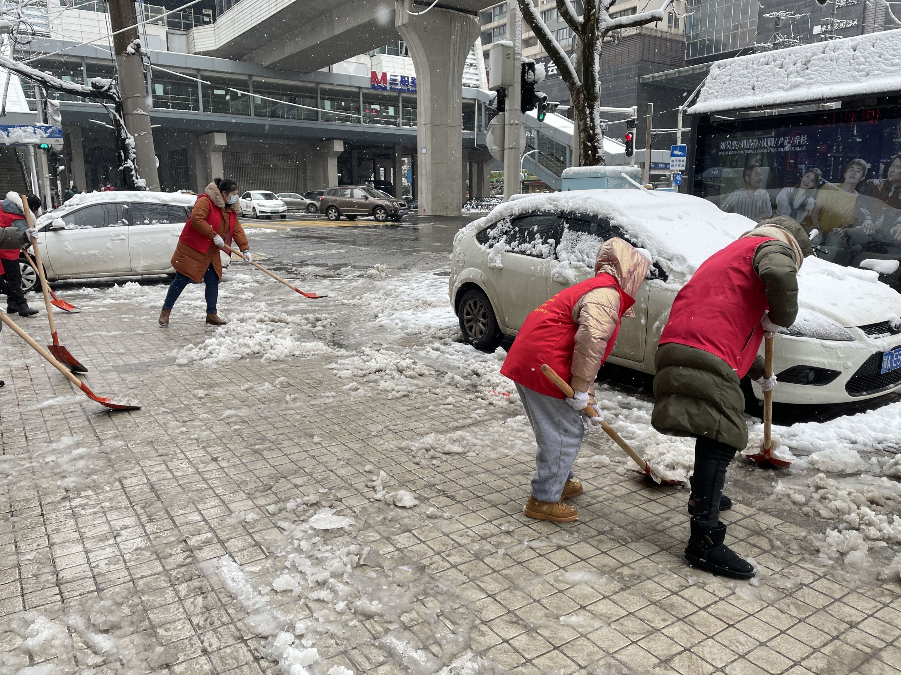 不少行人停下来一起清扫积雪。 通讯员韩莉 摄