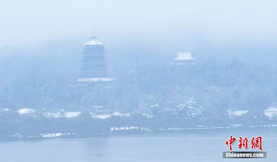 2月7日,雪中的雷峰塔和净慈寺。当日,浙江杭州迎来降雪天气,西湖呈现“雪湖”景观,美不胜收。 中新社记者 王刚 摄