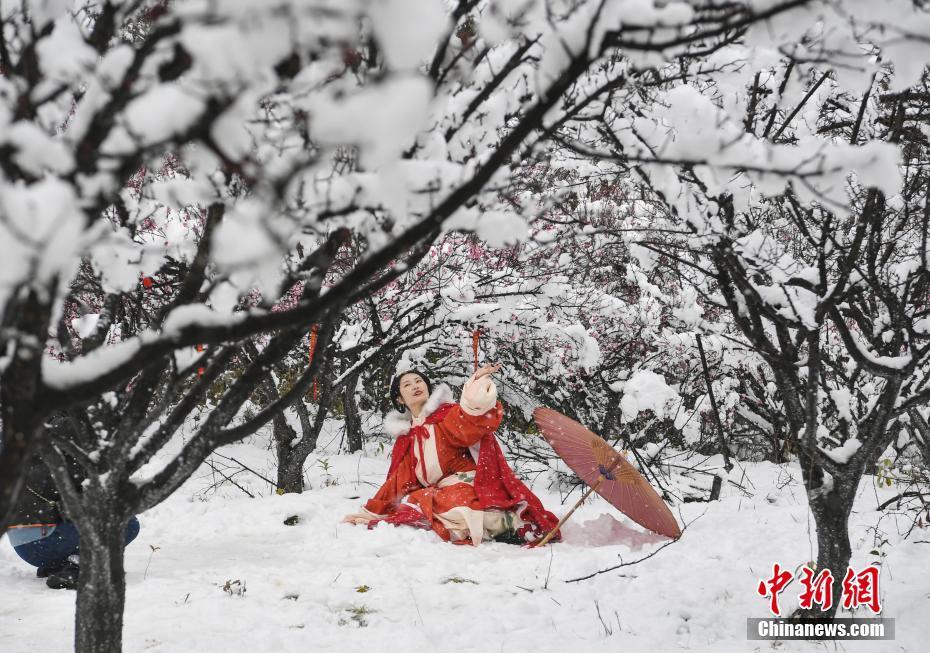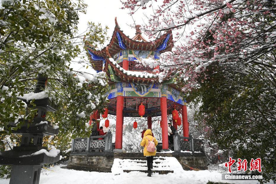 2月7日,安徽省合肥市迎来降雪天气,城市披上一层银装,白茫茫一片。在大蜀山脚下“雪打腊梅”的美景,吸引了众多市民前来欣赏拍摄。 韩苏原 摄