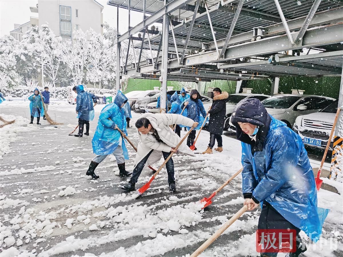 用铲子铲,扫帚扫,2月7日一大早,武汉市东西湖区的径河街呈现一片繁忙的景象,为了保障居民的正常出现,社区的工作人员纷纷上阵清除积雪,保障居民的正常出行。