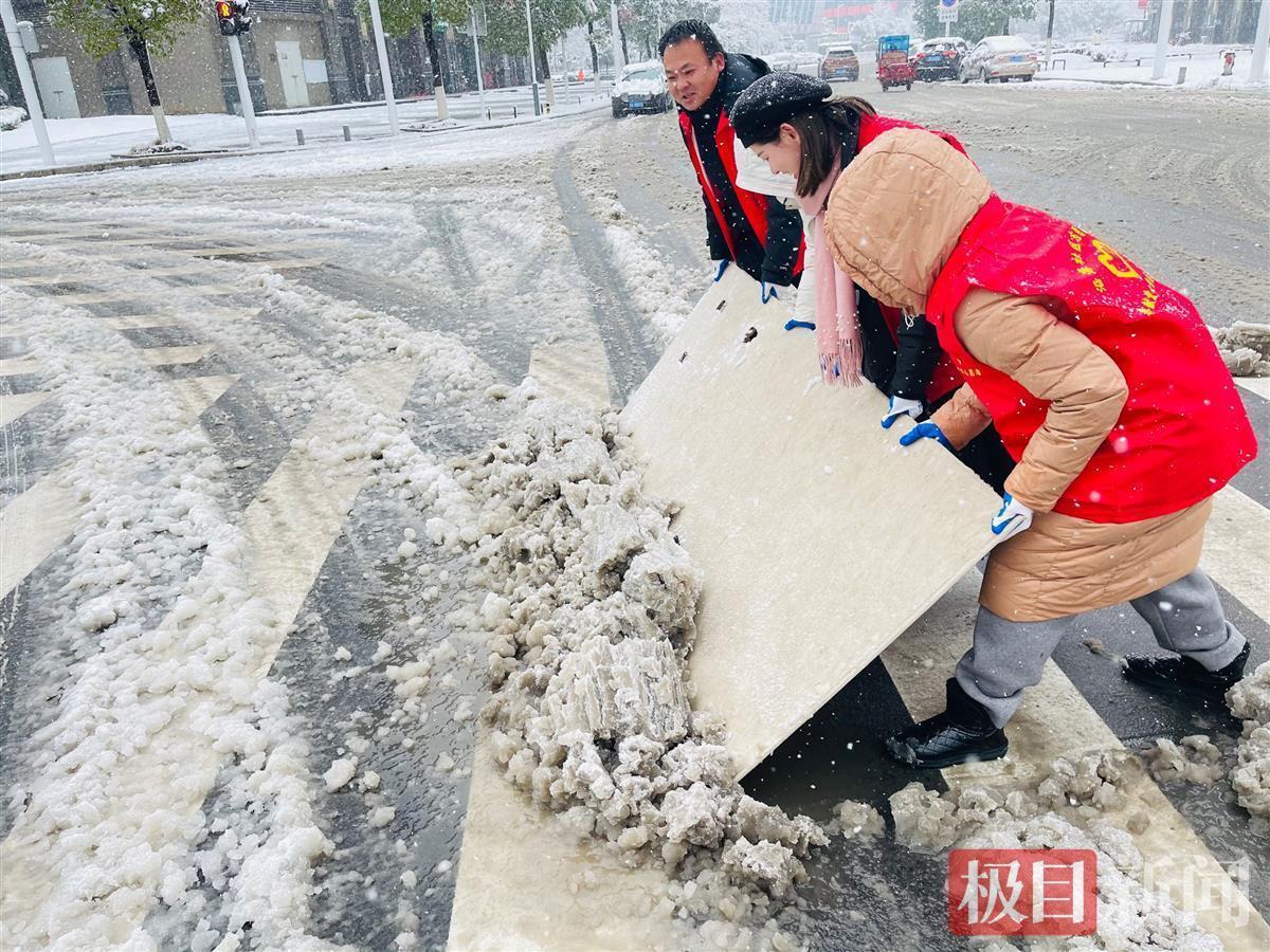 “我们都干劲十足,拿起铁锹和扫帚,说干就干。”民田社区的一位工作人员介绍说大家一边扫着雪,一边提醒着过路的行人注意安全,辖区内充满了温暖和谐的气氛。